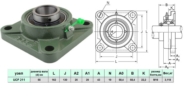 Корпусной подшипник UCF 211 это подшипниковый узел - элемент конструкции, объединяющий подшипник UC 211 и корпус подшипника F 211